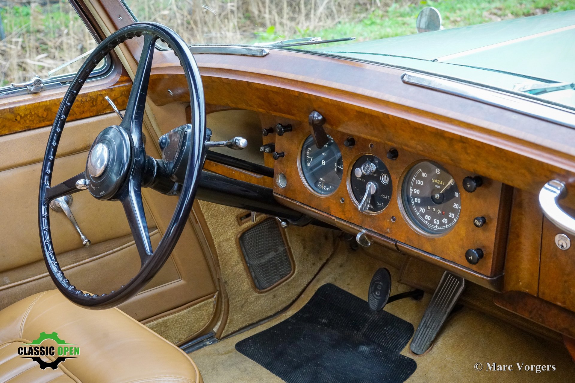 Cette Bentley est équipée de pare-chocs Pyrene spécifiques et de phares additionnels Lucas SLR700. Saisissez cette opportunité unique d'acquérir une Bentley Type R avec conduite à gauche !