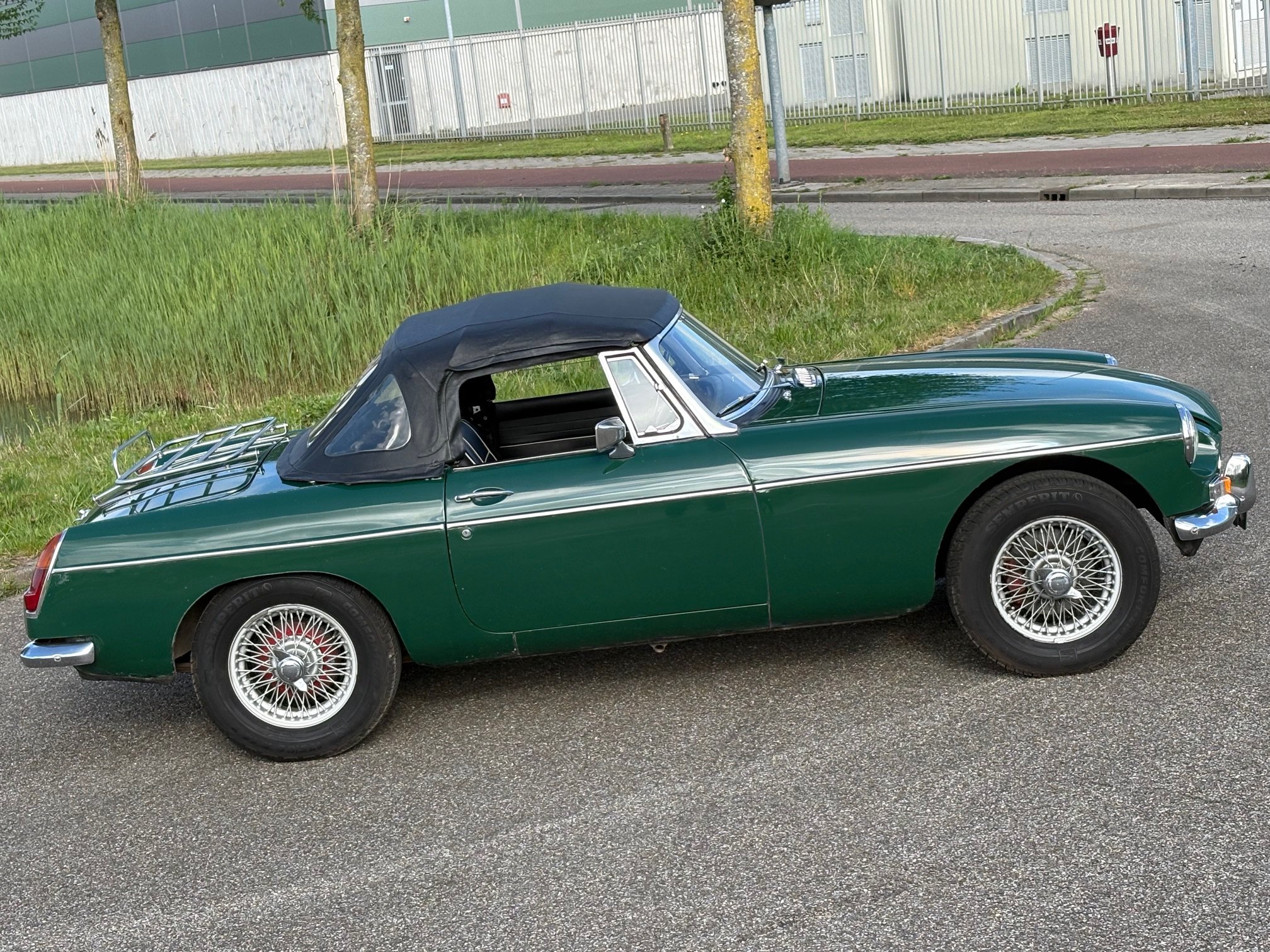 Couleur British Racing Green avec intérieur noir et capote noire.