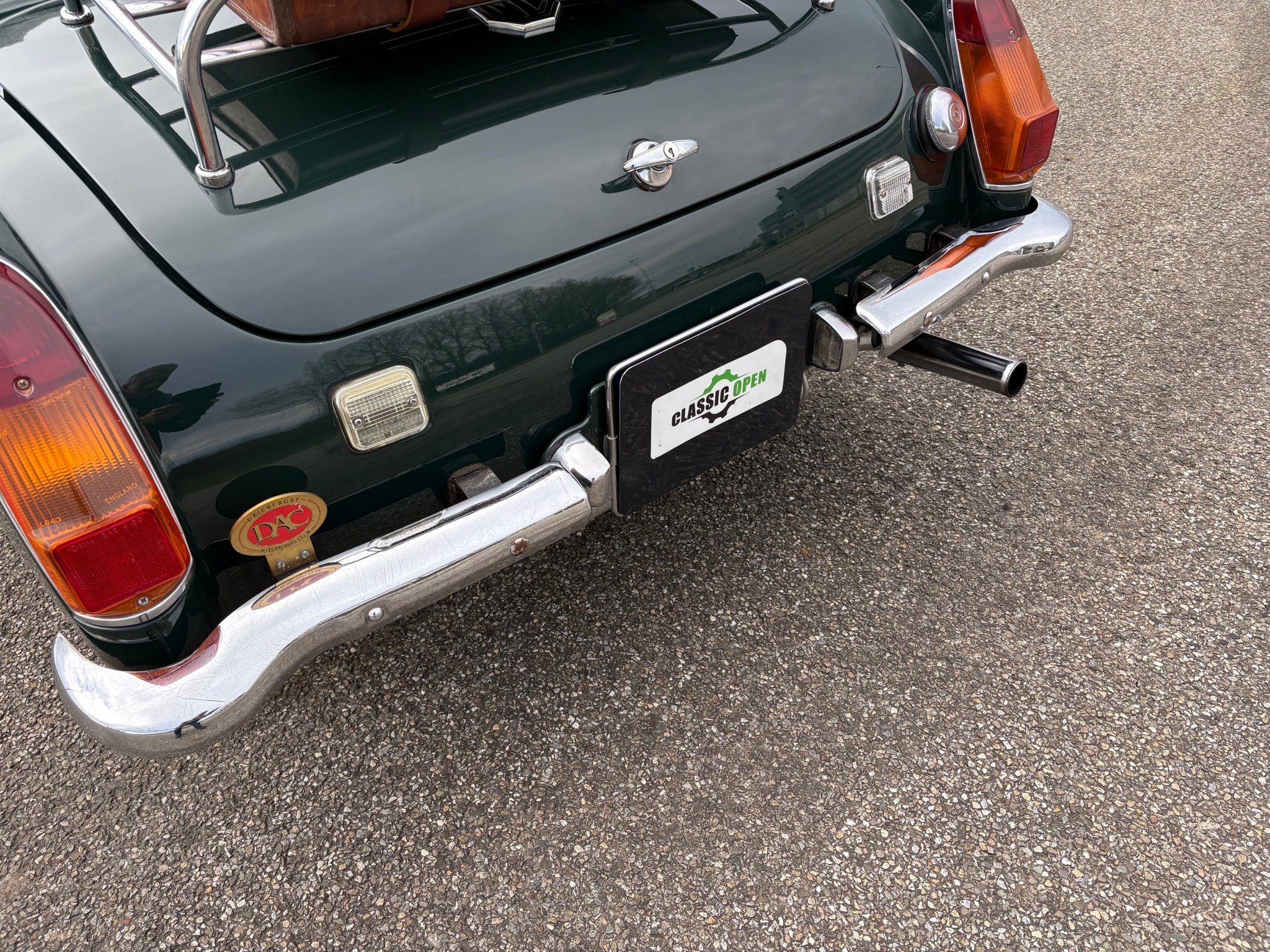 Les passages de roues arrière arrondis et le pare-chocs arrière en deux parties sont des éléments distinctifs de cette MG Midget.