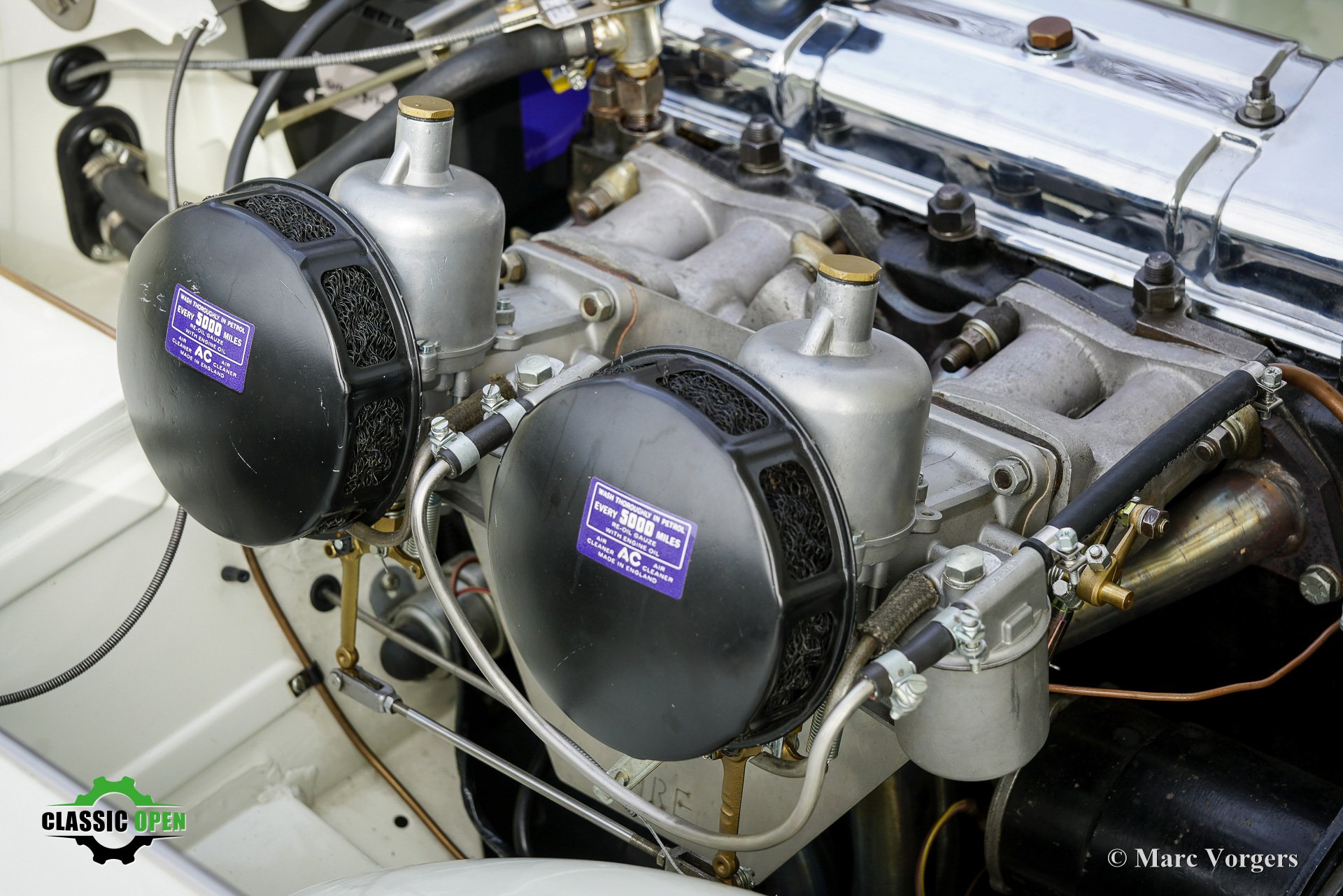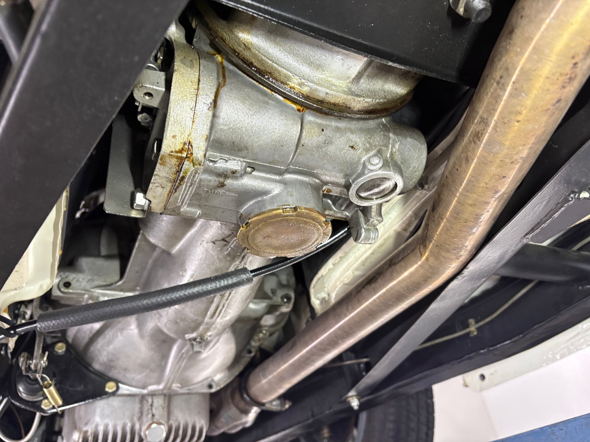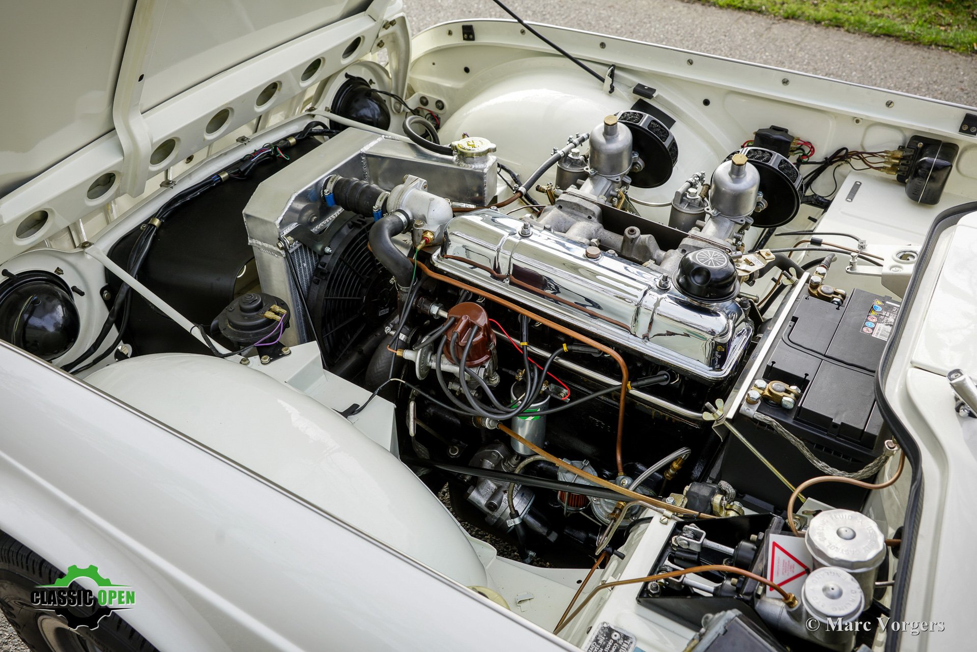 De nombreuses photos de la restauration et les factures correspondantes sont présentes dans le dossier historique. Cette superbe Triumph TR4 présente de charmants détails d'origine, tels que le tableau de bord peint d'époque et les filtres à air d'origine sur les carburateurs SU. Le volant d'origine se trouve dans le coffre, actuellement remplacé par un volant sport Moto-Lita à jante cuir. Parmi les améliorations, on note un radiateur en aluminium haute capacité et un système d'échappement en acier inoxydable.