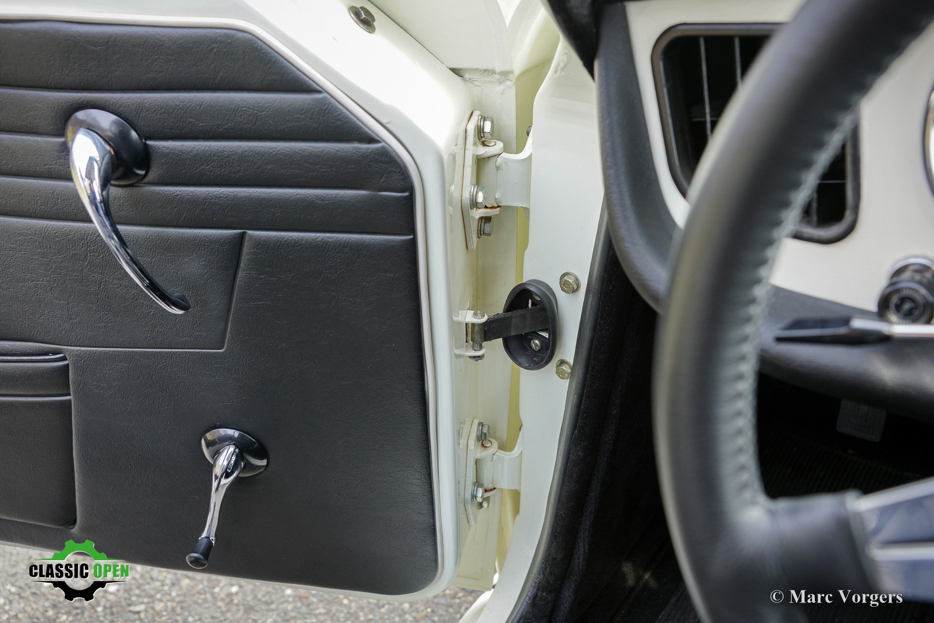 L’avantage du « Surrey Top » réside dans sa capacité à être entièrement retiré, permettant ainsi l'installation d'une capote souple. Ensuite, la voiture est équipée de superbes jantes American Racing en alliage léger chaussées de pneus Firestone F560 165 R15.