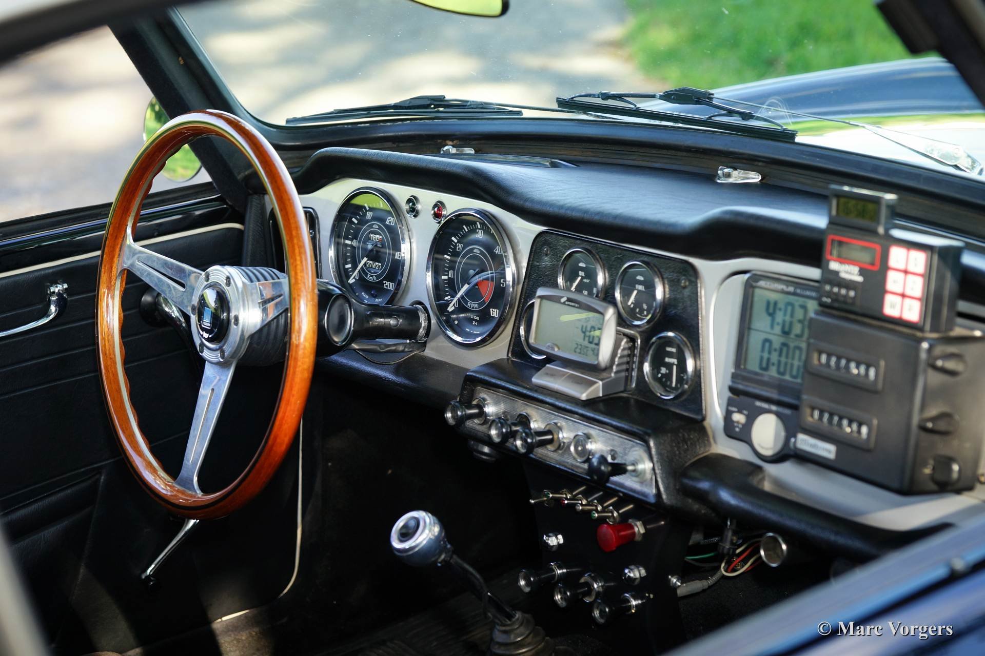The Triumph TR4 has a very beautiful wooden dashboard that is clear and functional and is equipped with large Smiths clocks.